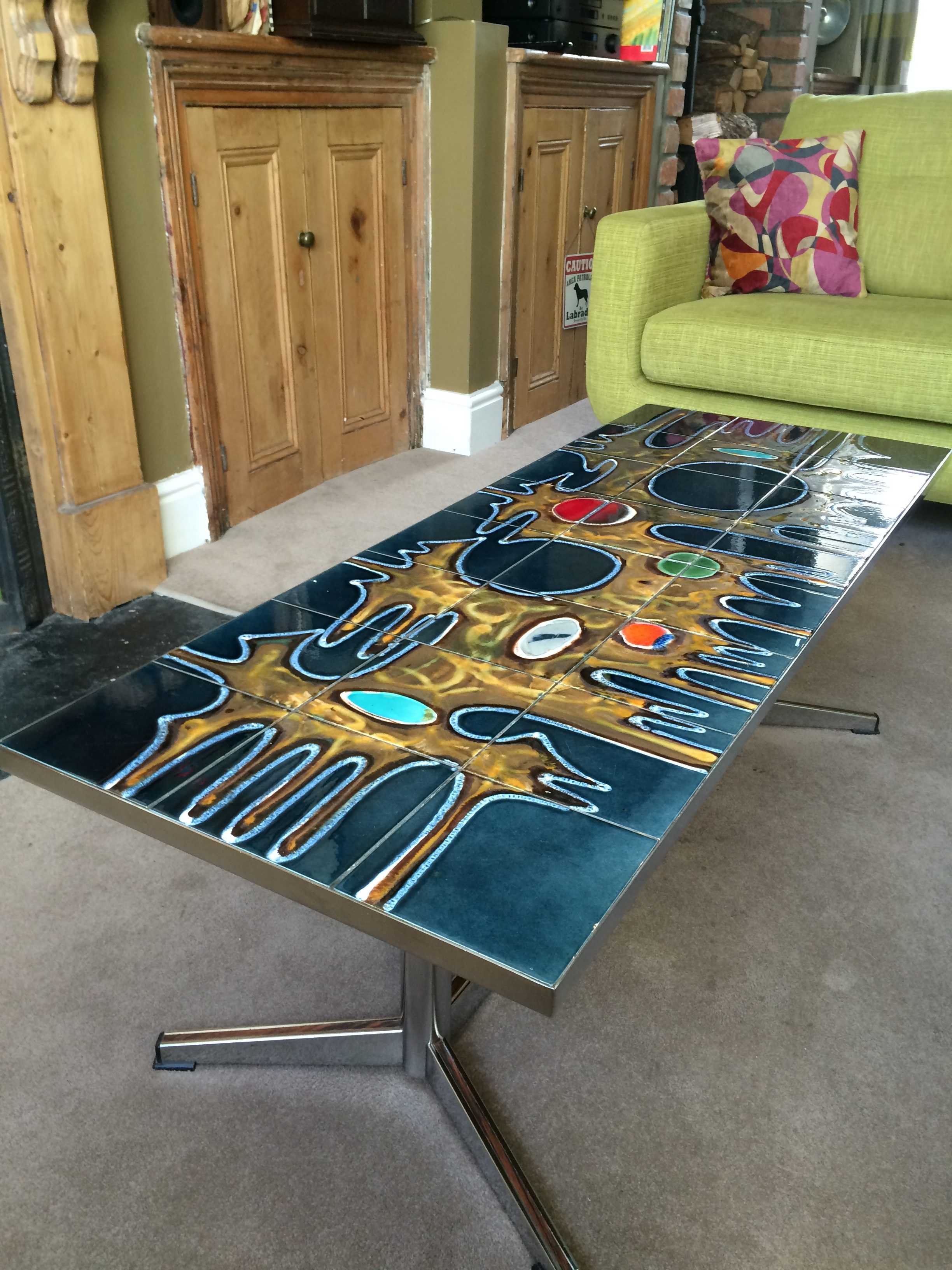 1960s Adri Syled Ceramic Art Tiled Table – Chrome and Teak SOLD