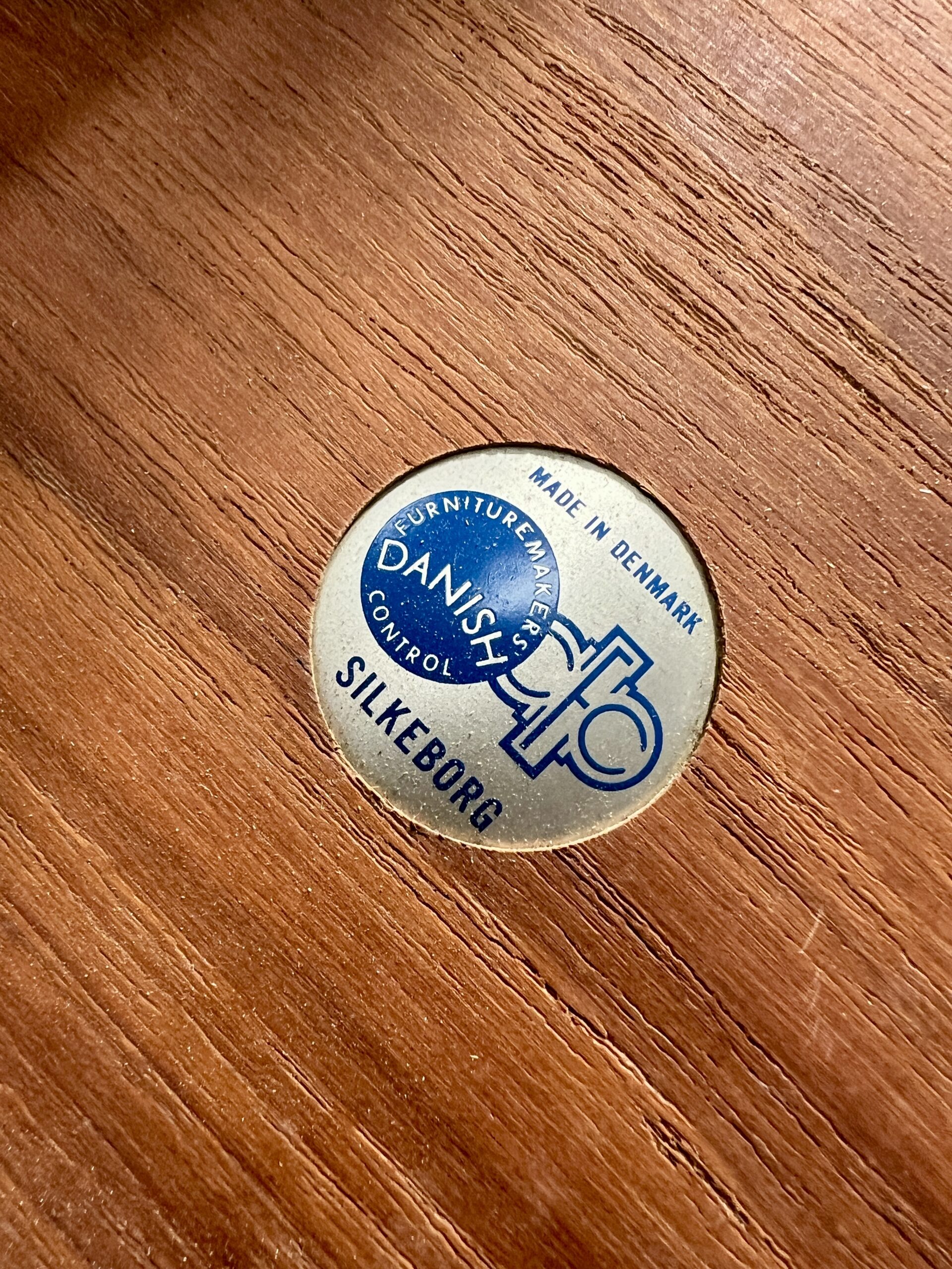 This teak coffee table was designed in the 1960s by Johannes Andersen for CFC Silkeborg with a beautiful cane work under-shelf / magazine rack.