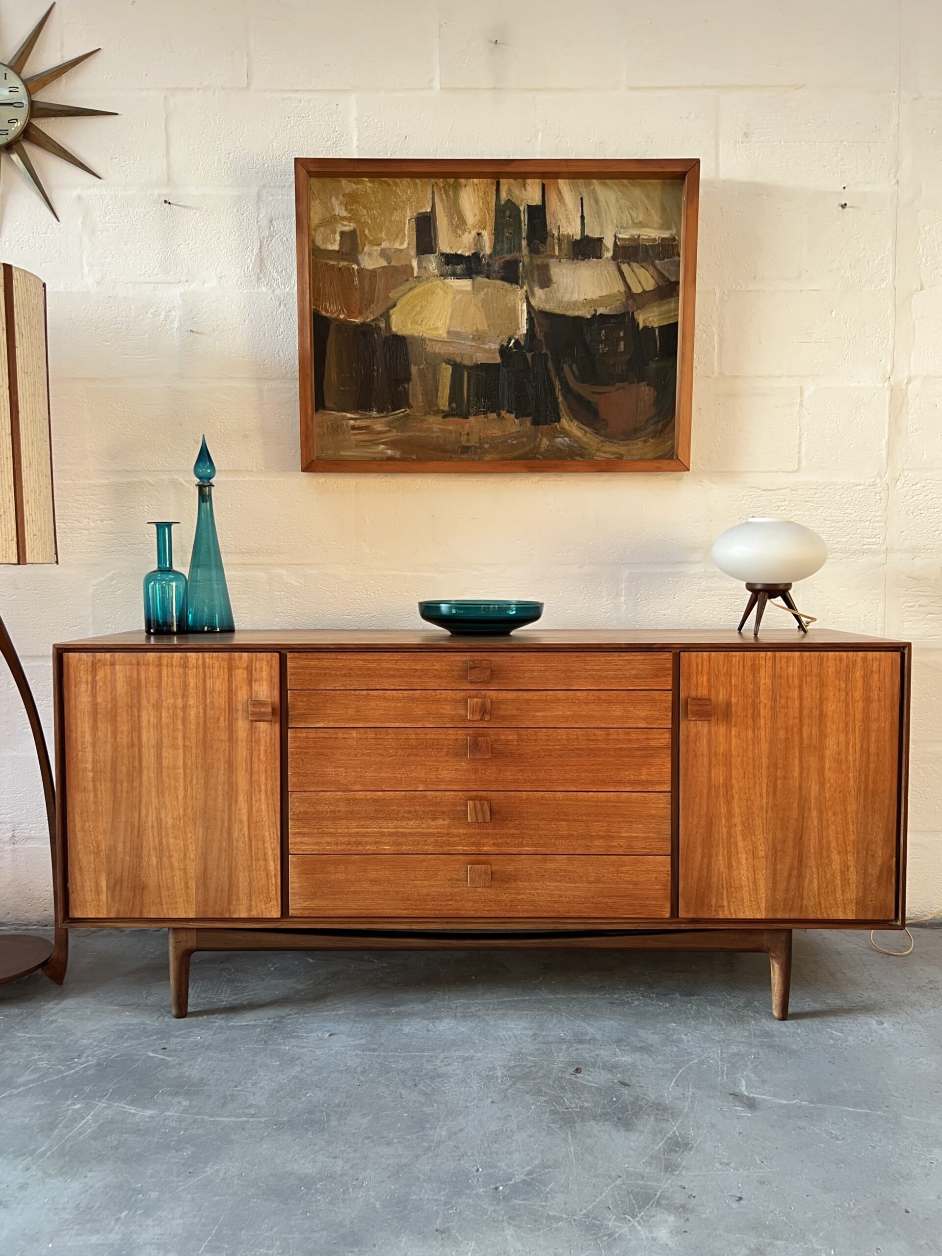 Designed by Ib Kofod Larsen for G Plan’s ‘Danish Line’. This beautiful sideboard was made circa 1965 and is in excellent original condition. This sideboard is beautifully styled in teak with square handles in rosewood.