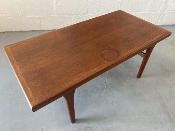 Beautifully crafted coffee table designed by Johannes Andersen for CFC Silkeborg in Denmark circa 1960’s. Comprised of solid teak wood and due to its size is a very practical coffee table.