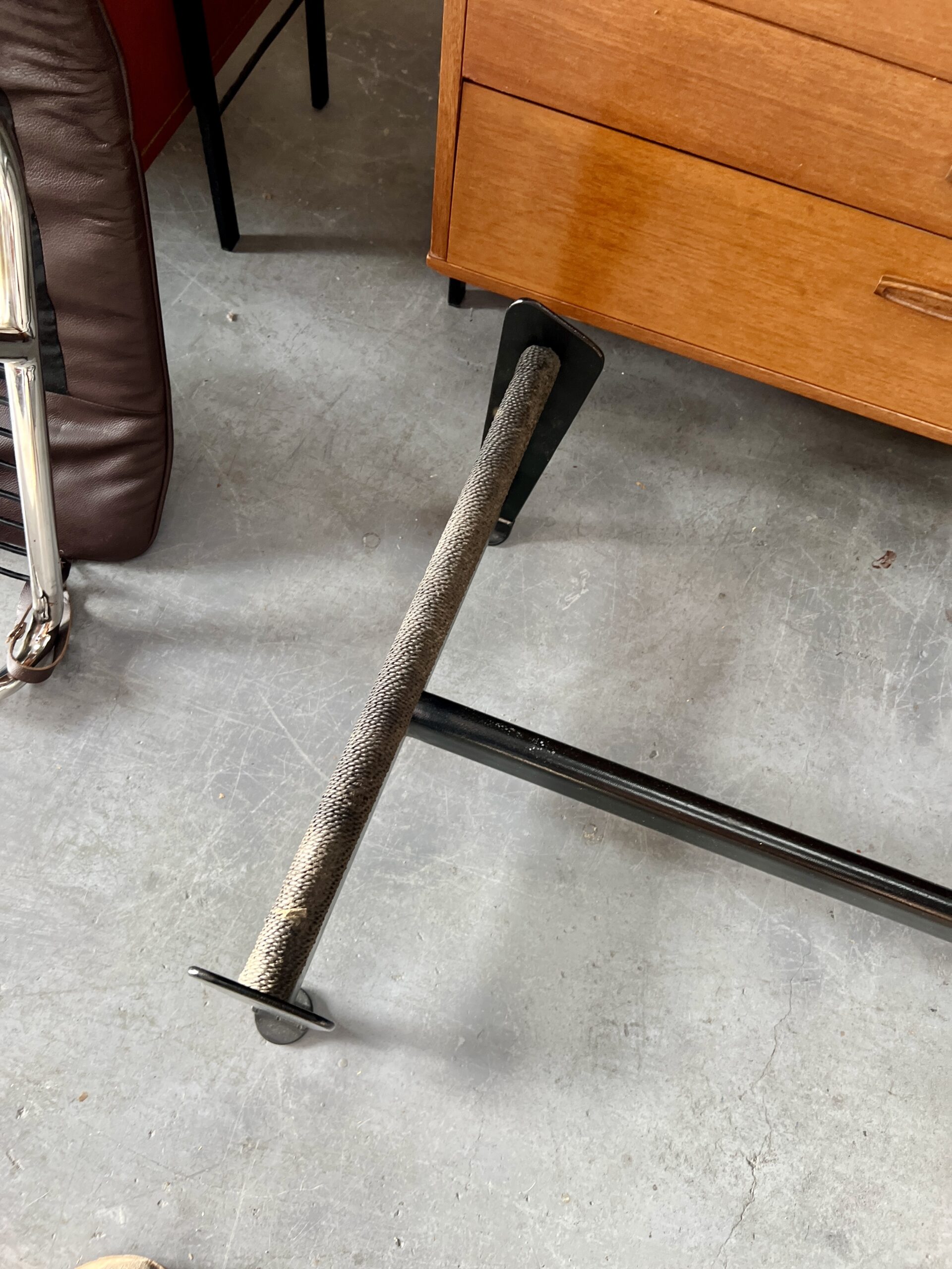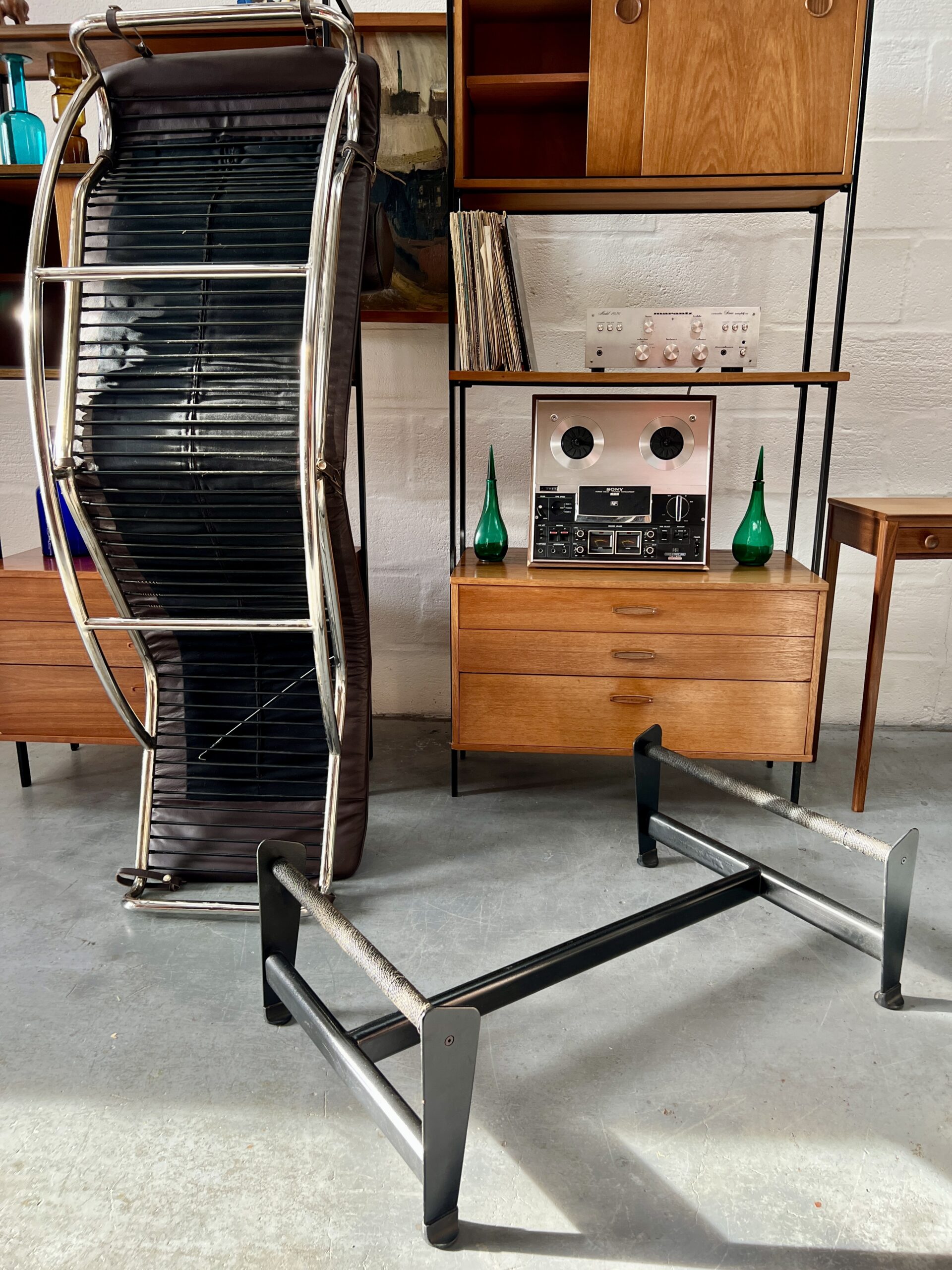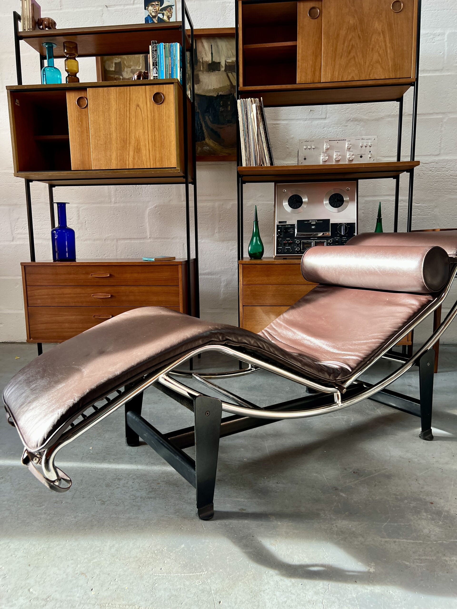 The LC4 chaise longue was originally designed in 1928 by Le Corbusier, Pierre Jeanneret and Charlotte Perriand and is now part of the permanent collection at the Museum of Modern Art (MOMA) in New York. This high quality Italian made replica, believed to be from the late 1980’s, offers a considerably more affordable opportunity to own an iconic piece of furniture.