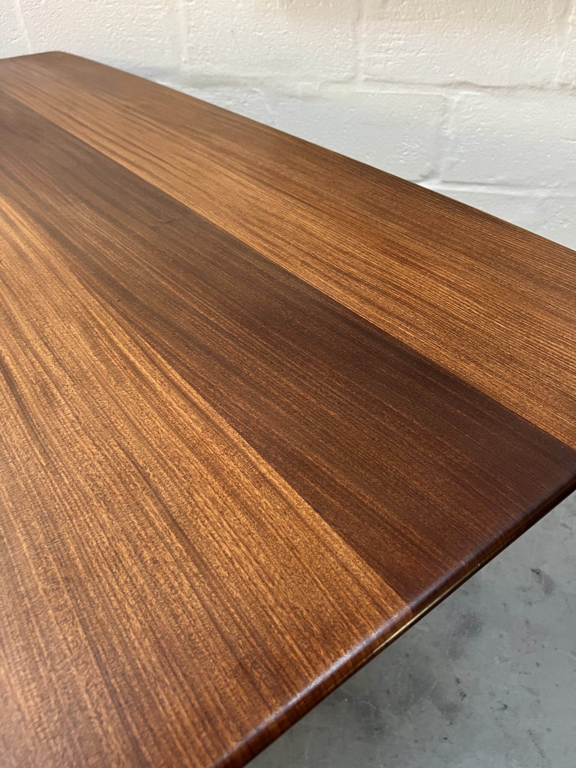 The table is in very good vintage condition and will comfortably seat 6. The teak is dark and richly toned with a stunning grain on the table top. With softly curved edges and flowing, sculpted legs that taper down from the table corners, its clean, organic design will fit into the contemporary dining room.