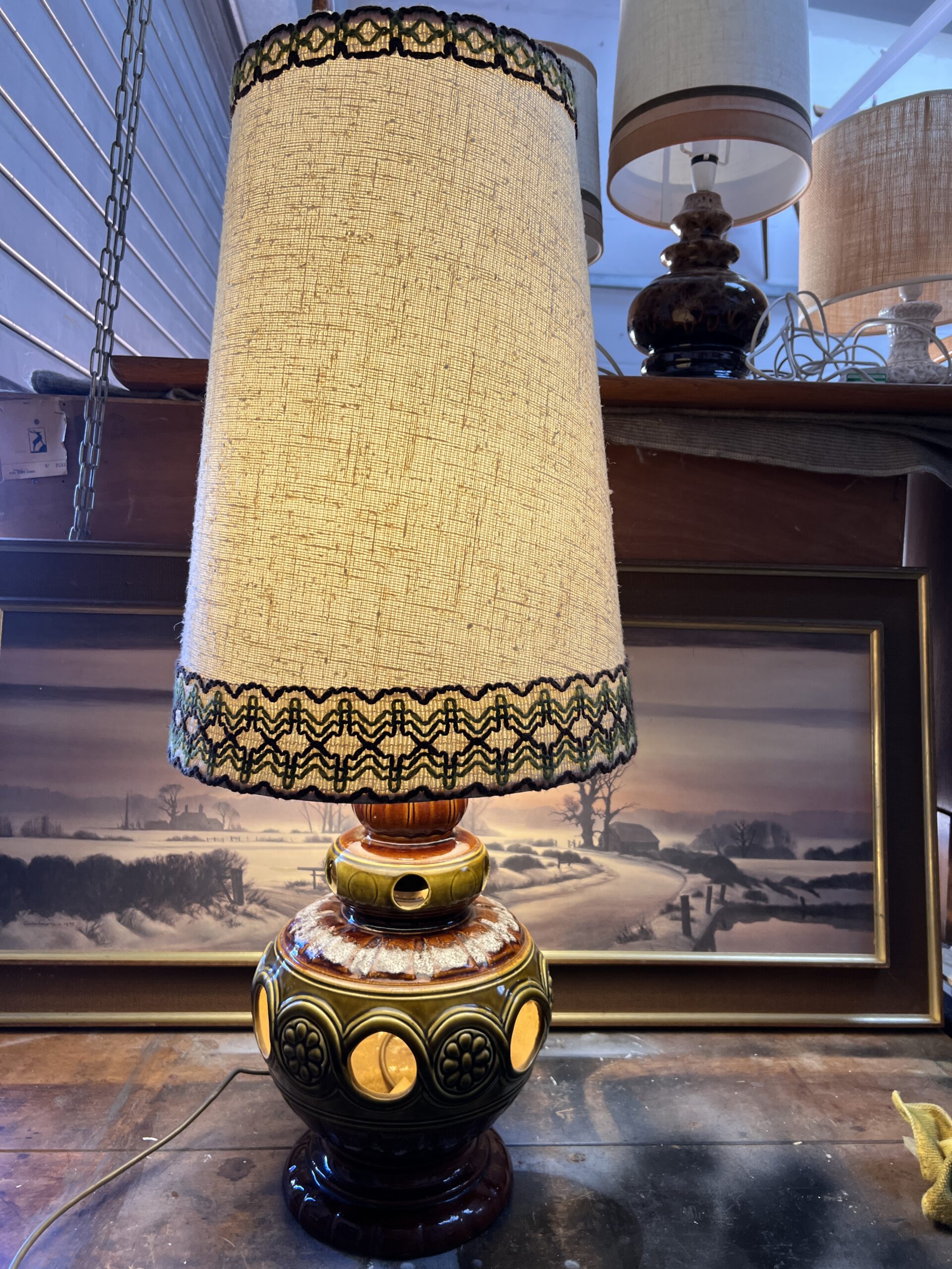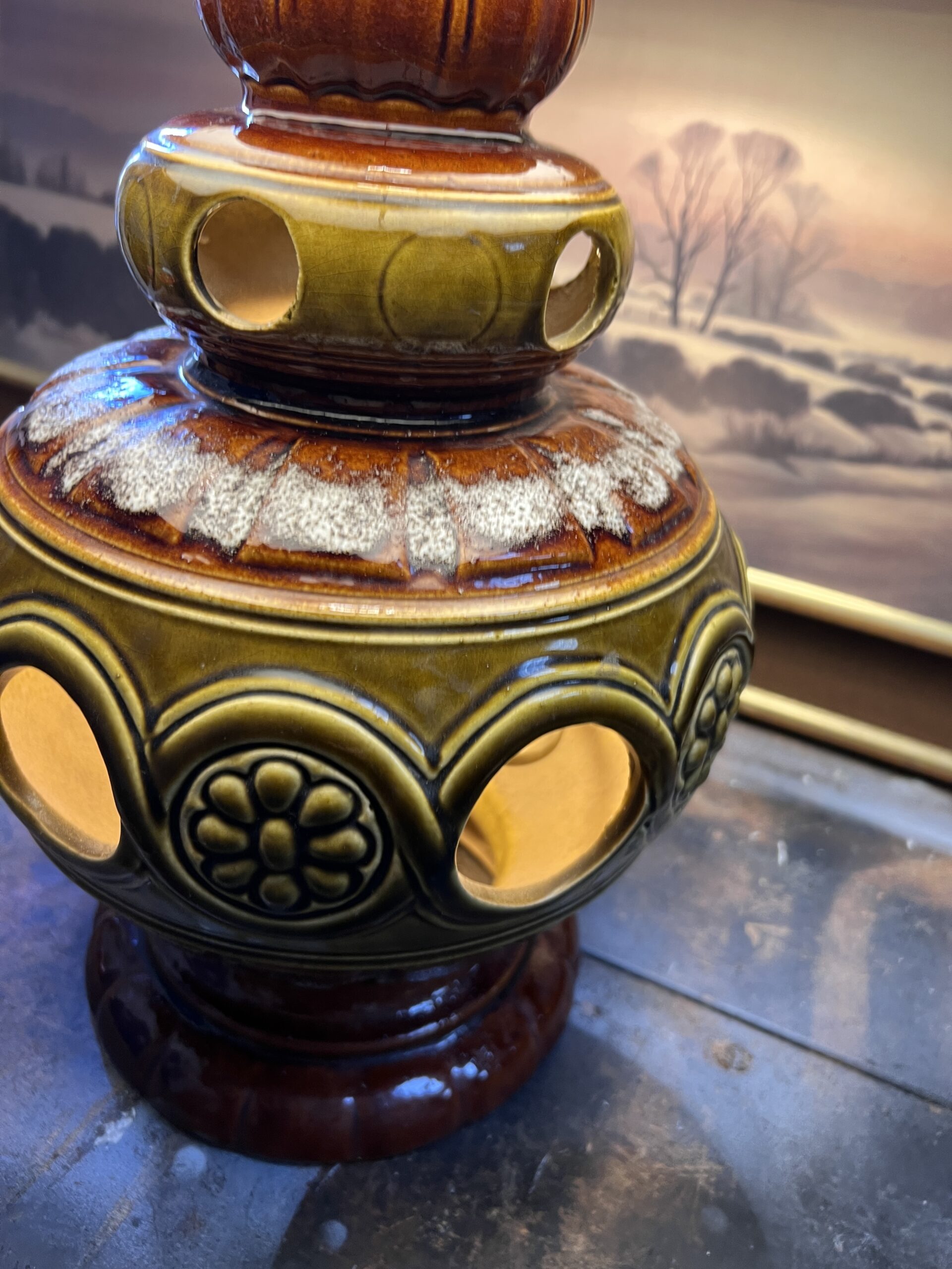 A lovely colour tone to the lamp base in rust, beige, brown and green.