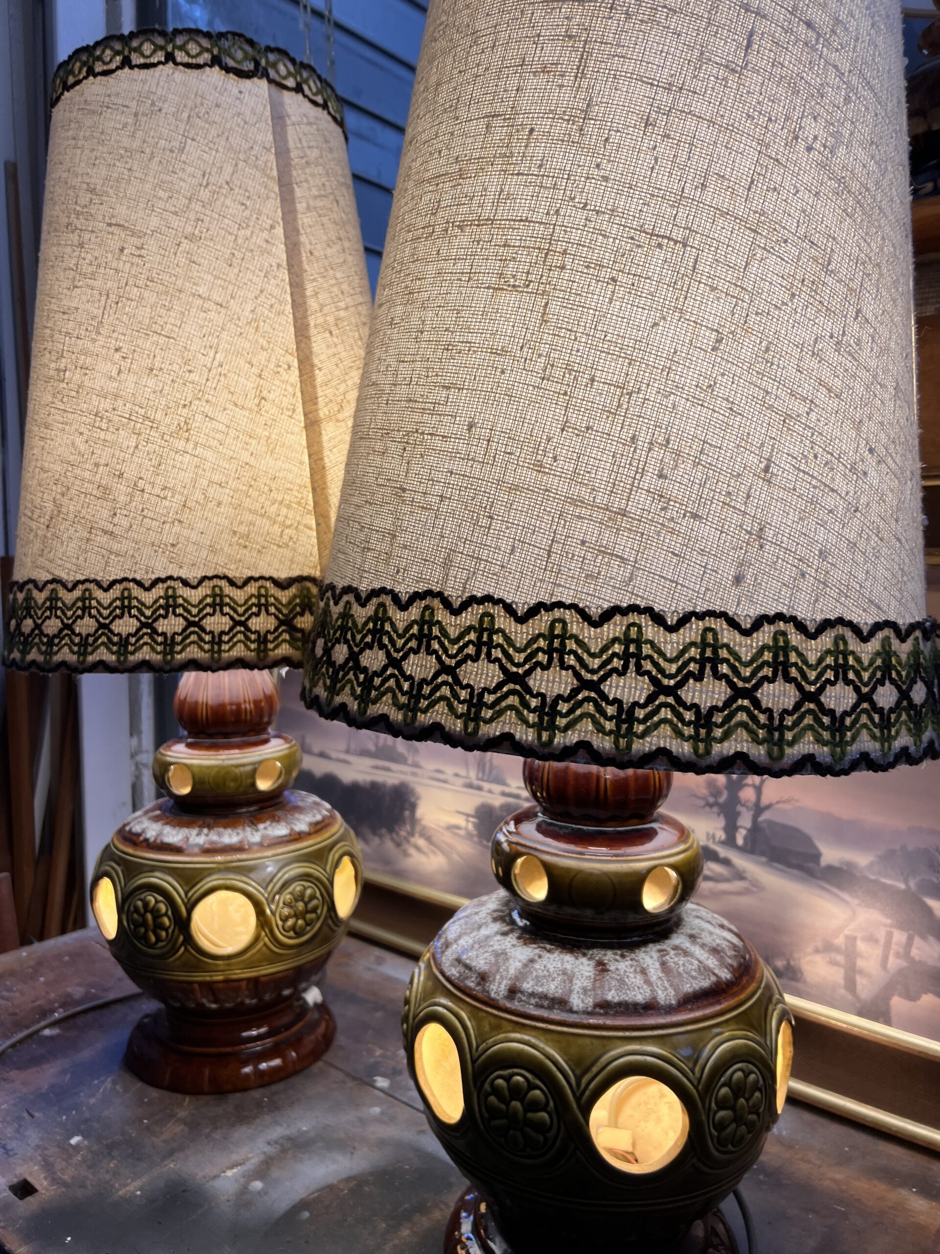 • Pair of Mid Century German Fat Lava Pottery Lamps