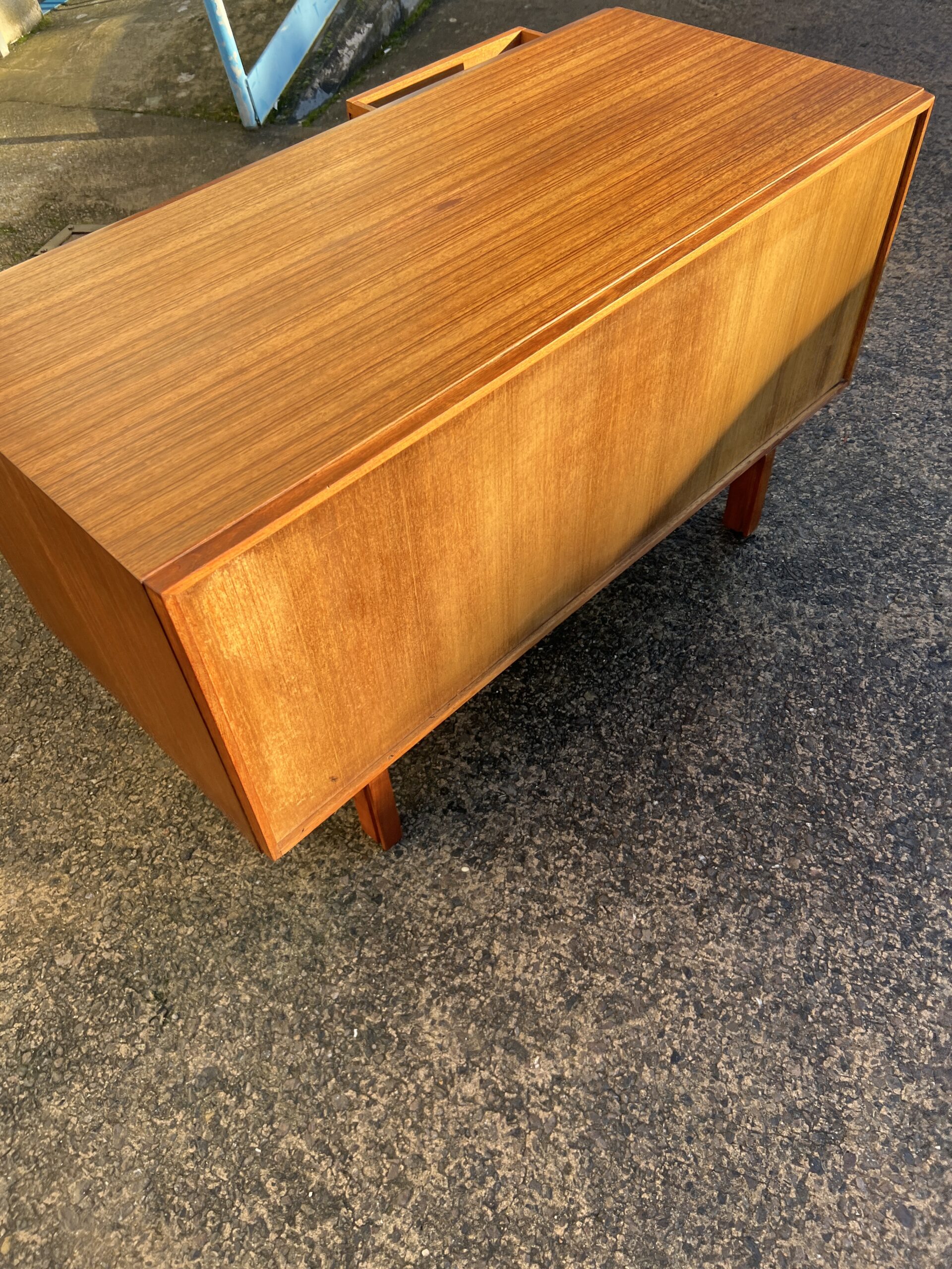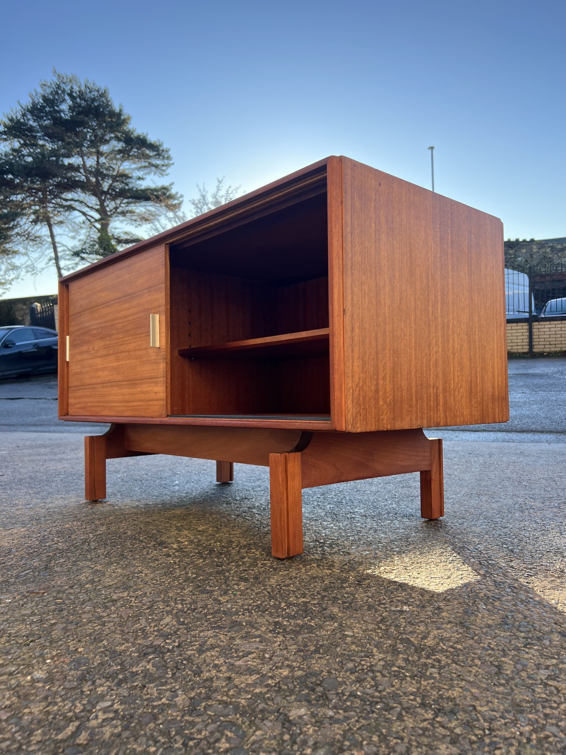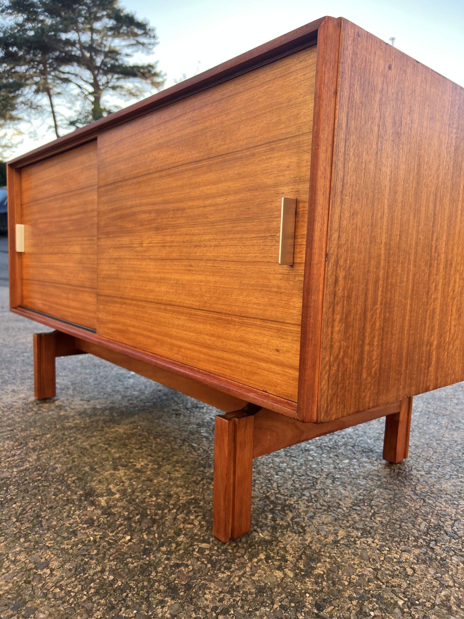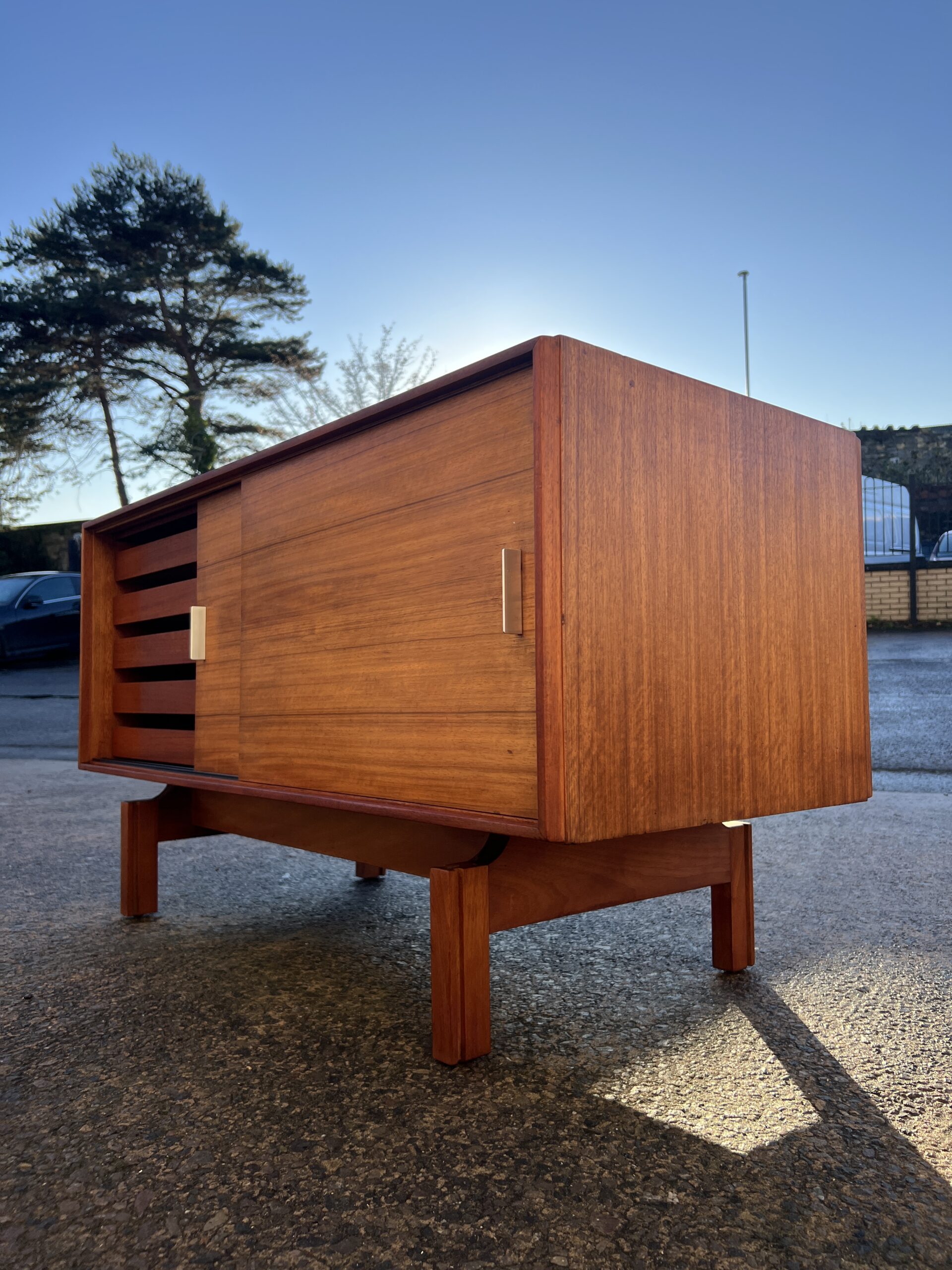 A mid century sideboard maufactured by ‘Golden Key Fuirniture’ and produced by “Palatial Ltd.” in London, Uk in the late 1950s.