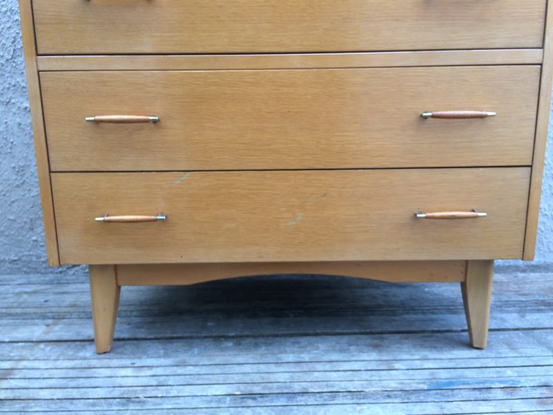 Stylish British Mid Century 1960’s Oak Tallboy Chest of Drawers by Lebus