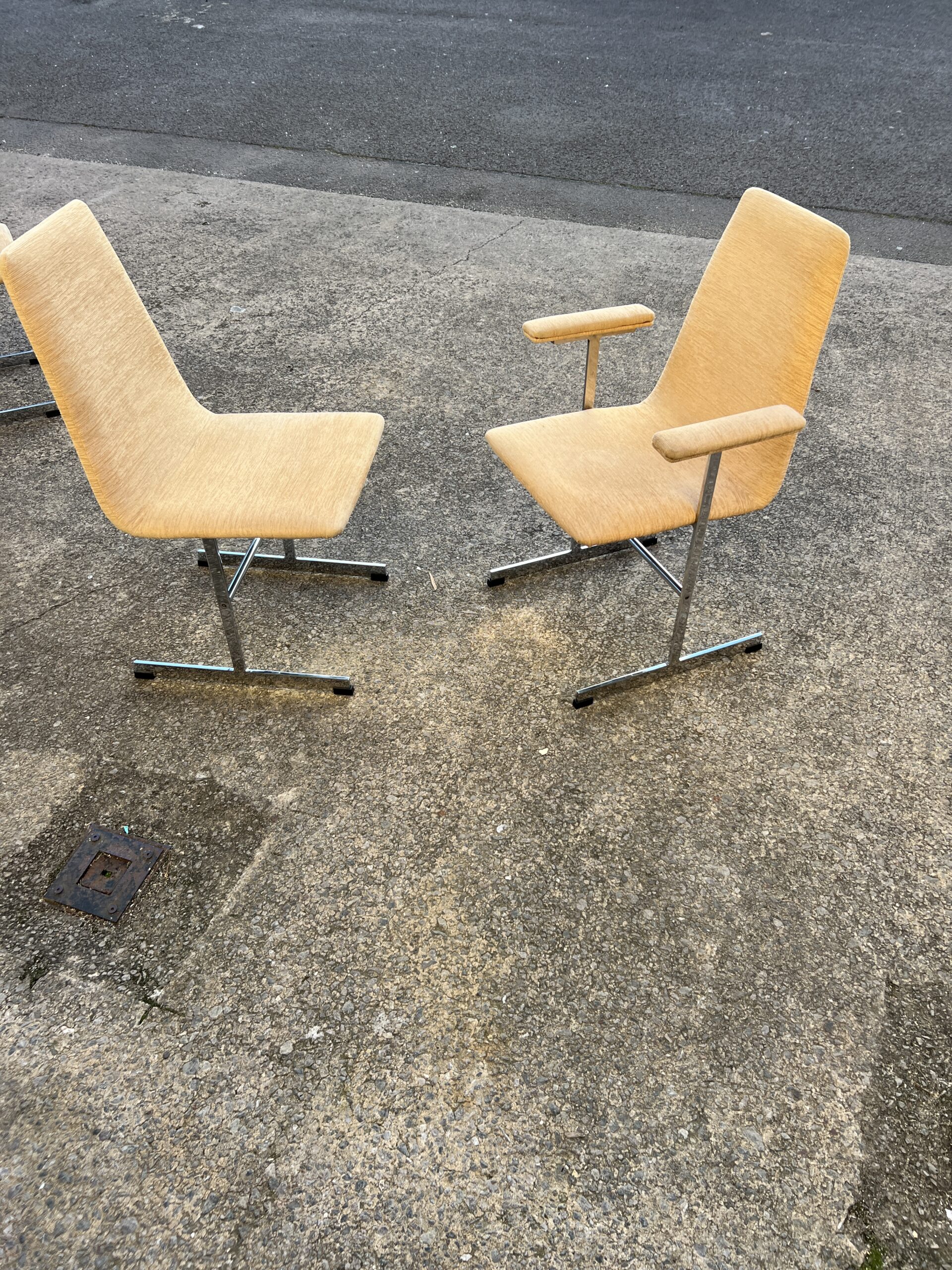 In good unrestored vintage conidtion. There are a few minor scratches on the chairs and table as you would expect with age. No signifcant scratches to the glass table top, rush to the chrome or stains to the chair fabric. Please review photos – happy to answer any questions.